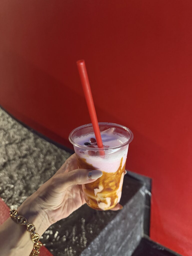 オマーン館のカフェでは、**「ローズヨーグルトスムージー」がオススメ**。