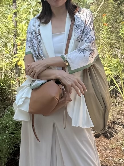 展示館内のひんやりした空調から、屋外の強い日差しまで、1枚あるだけで安心の万能アイテムです。巻き方や羽織り方で表情が変わるので、旅行やお出かけにも◎。