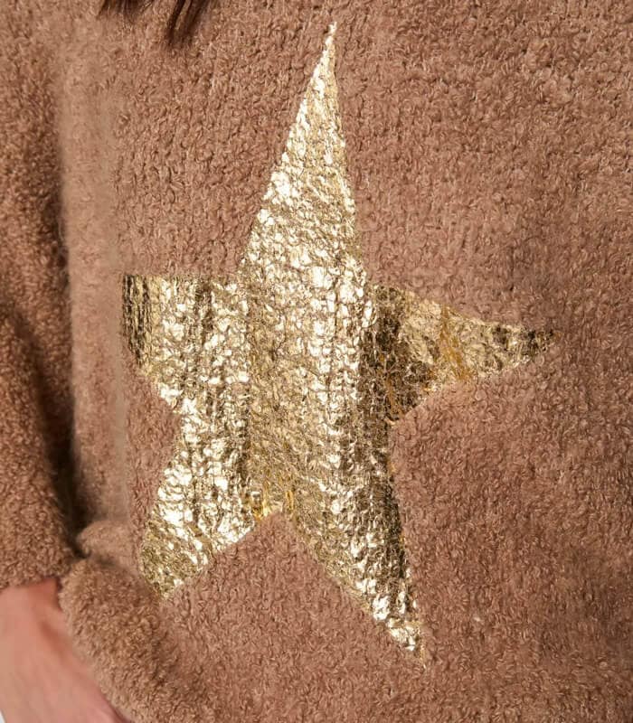 ゴールドのロゴがスターが華やかに輝くラグジュアリーニット。