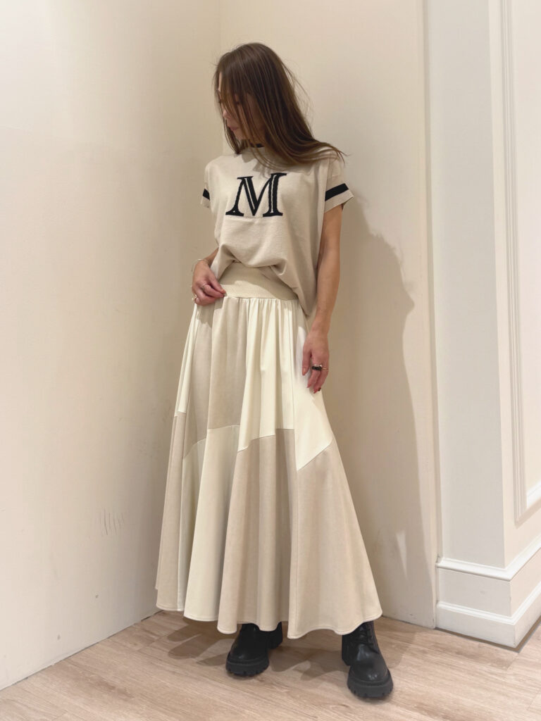 ニットやスウェット、スカートなどのレイヤードスタイルが楽しめる今。