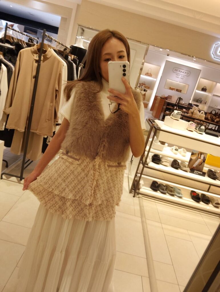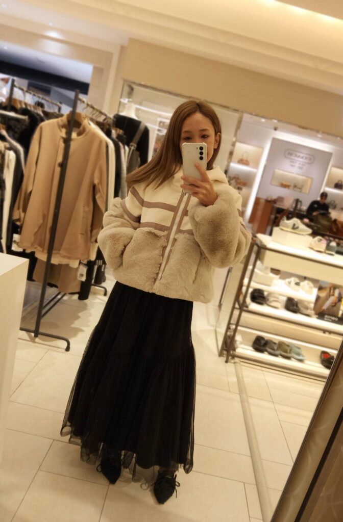 ② ファー×ツイードコンビジレで旬のレイヤード