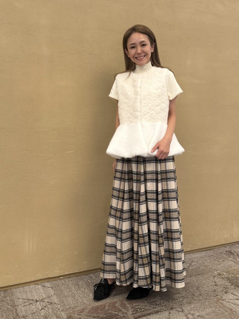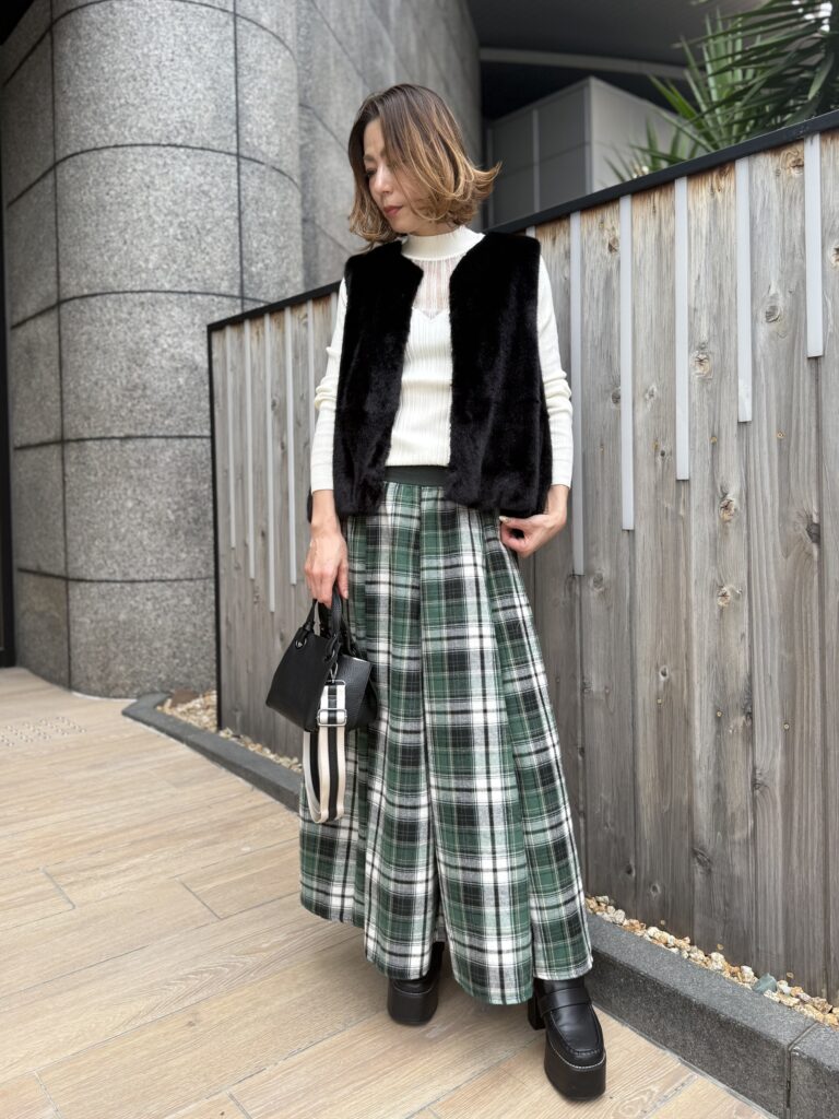 TOLNERA バルーンファーベスト × チェック柄スカート