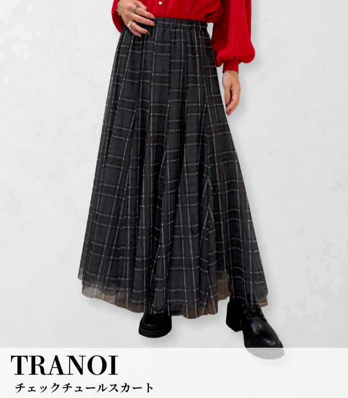 ほんのり透けるチェック柄が女性らしさを引き立て、動くたびにふわりと揺れるシルエットが魅力です。