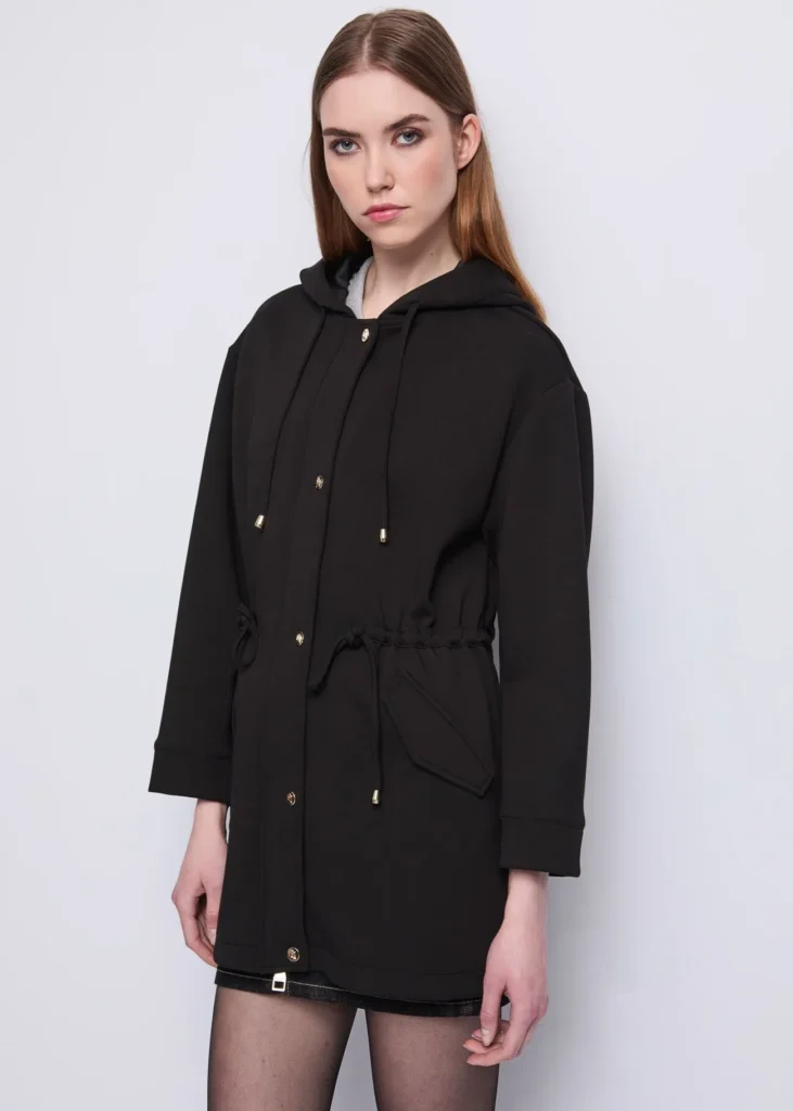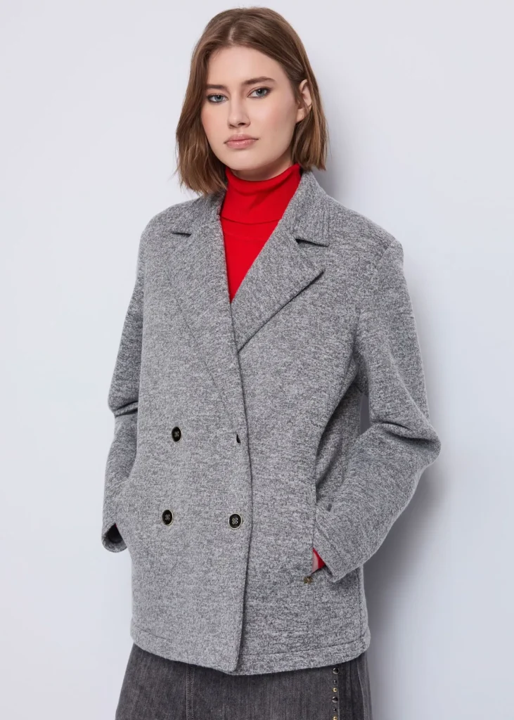 柔らかくふっくらとしたボディングニット素材が魅力のショートコート。