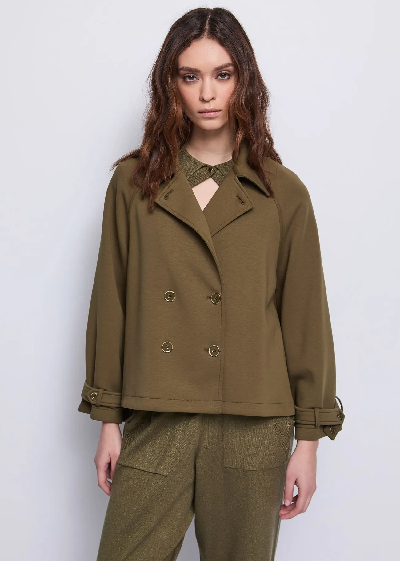 ダブルボタンのデザインで、クラシックな印象をキープしながらも軽やかに羽織れる一枚です。