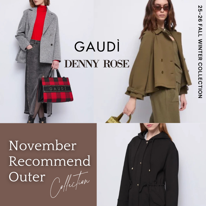 今回は【GAUDÌ】と【DENNY ROSE】の新作から、この秋冬におすすめのアウターをピックアップしてご紹介します✨