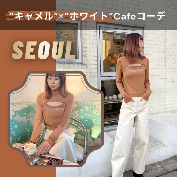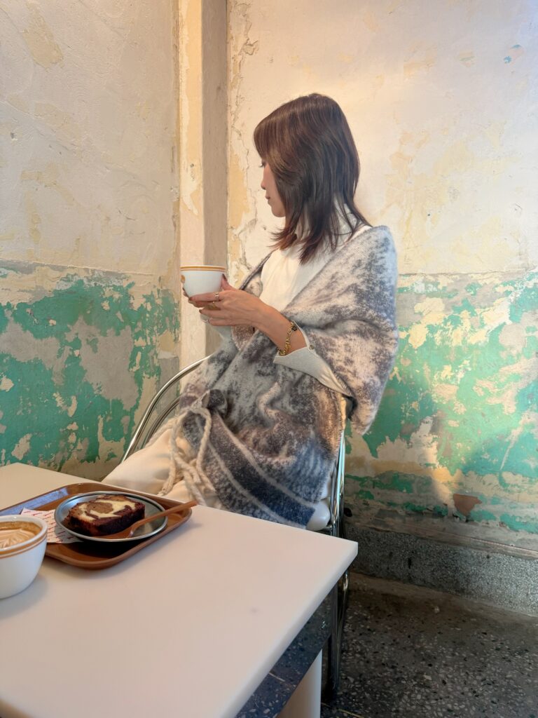レトロな店内の雰囲気や冬のソウルの景色に自然と溶け込むニュアンスカラー。