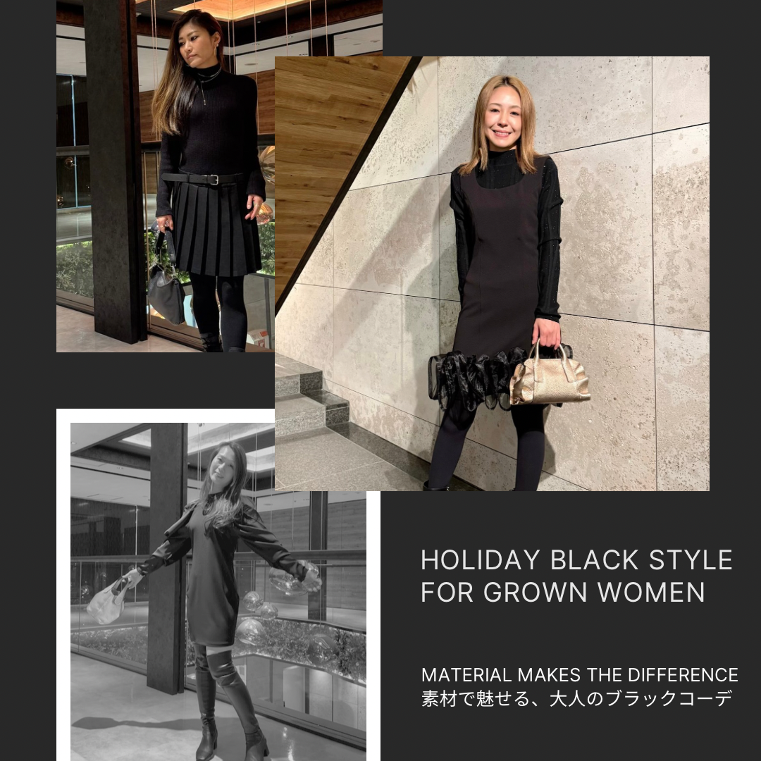 今回は、“素材感”で魅せる大人のブラックコーデ をテーマに、ホリデーシーズンにおすすめのスタイリングをご紹介します。