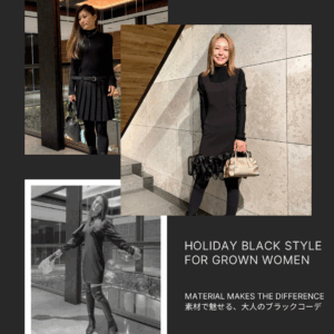 今回は、“素材感”で魅せる大人のブラックコーデ をテーマに、ホリデーシーズンにおすすめのスタイリングをご紹介します。