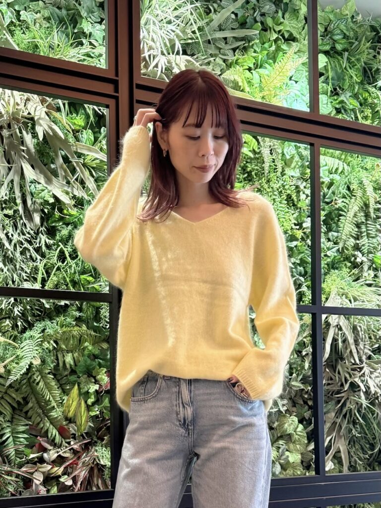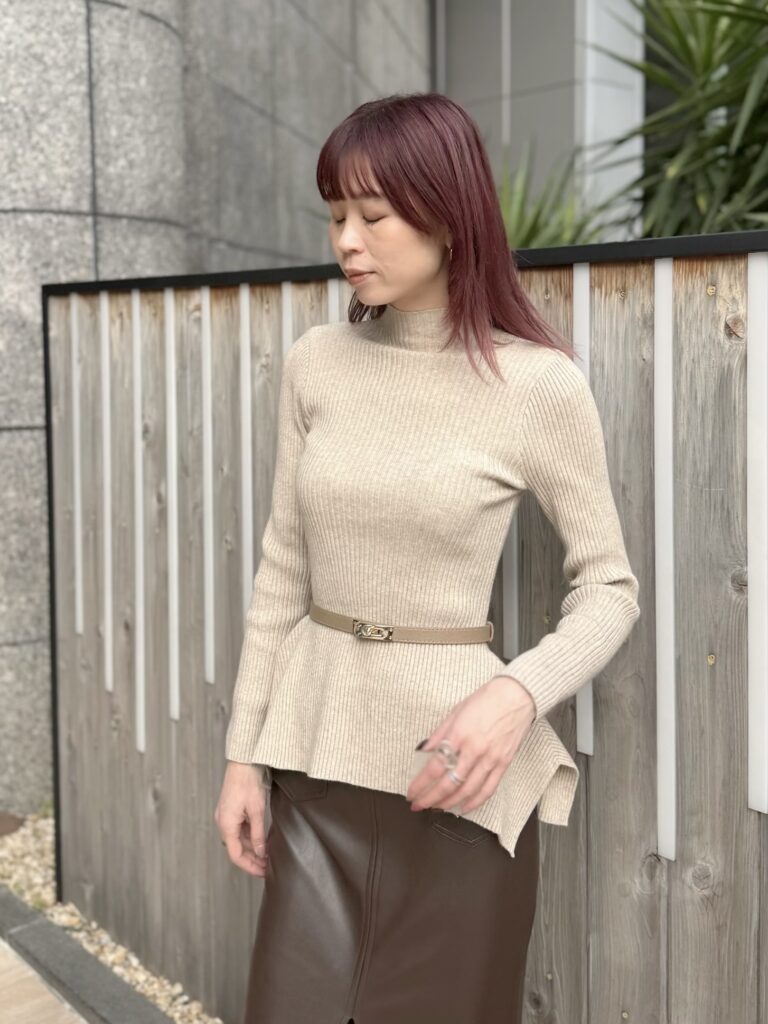 冬コーデが重くなりがちな時期だからこそ、差し色ニットがぐっと映えます。