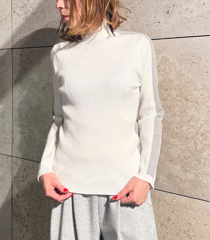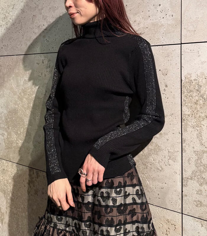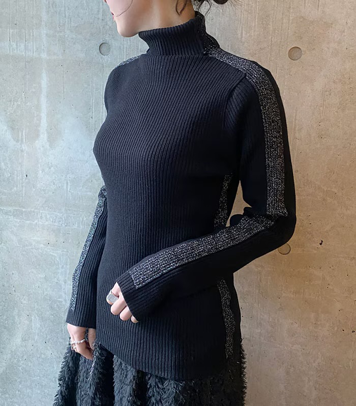 サイドラメラインタートルニット