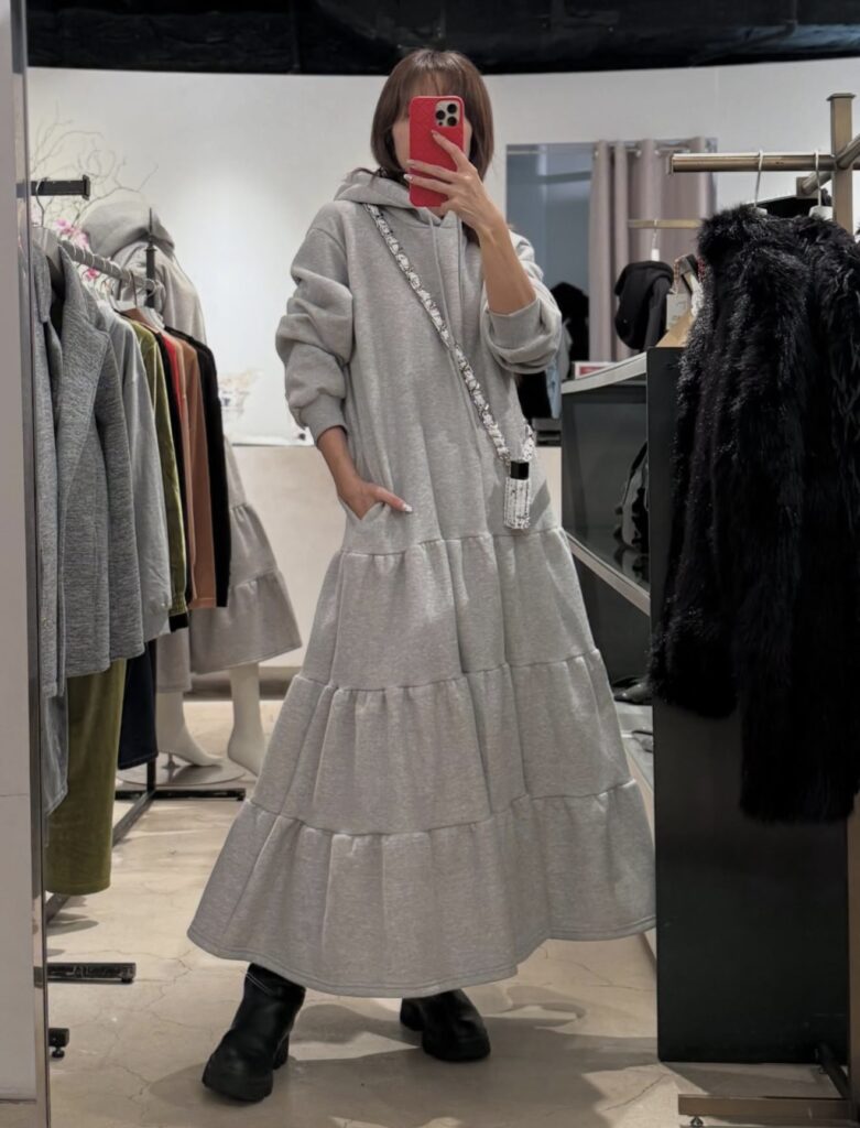 1枚で完成する、大人のためのフーディーワンピース