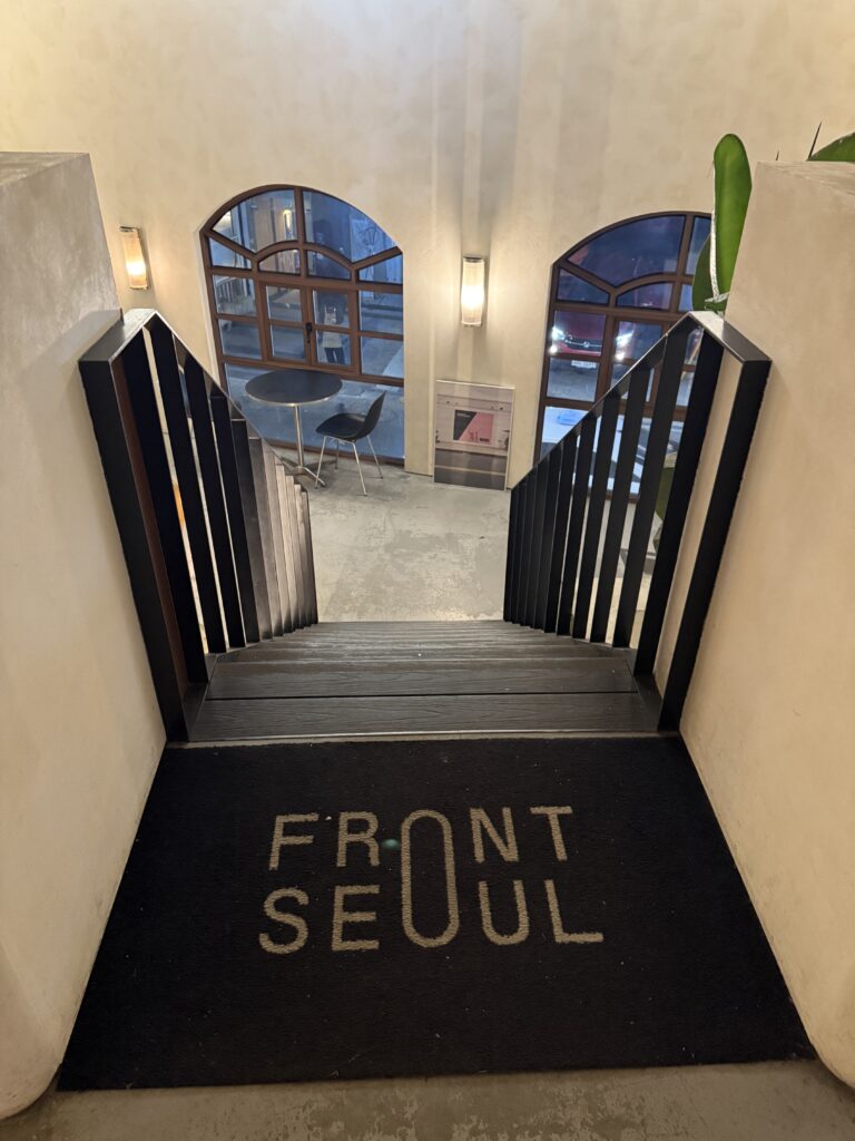 階段を降りると現れる「FRONT SEOUL」のロゴマット。
