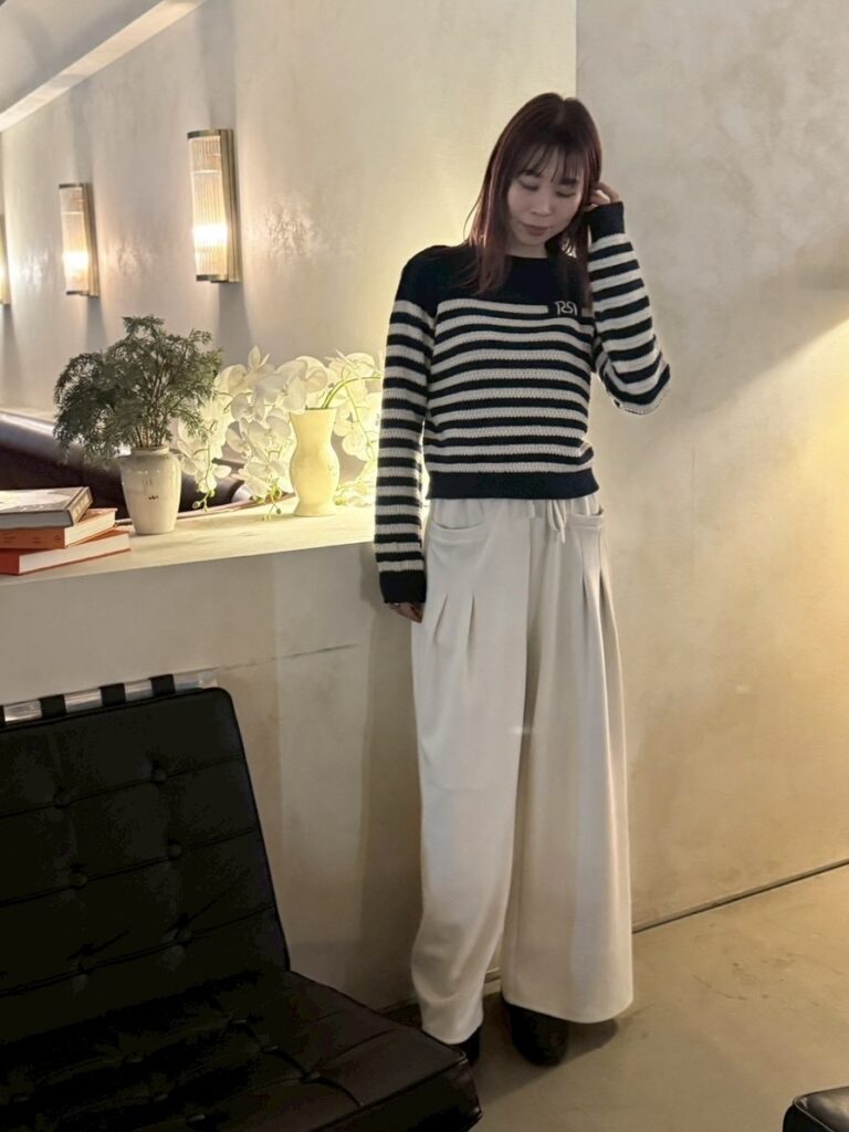 リナシメントのニットにルギバのパンツ、
