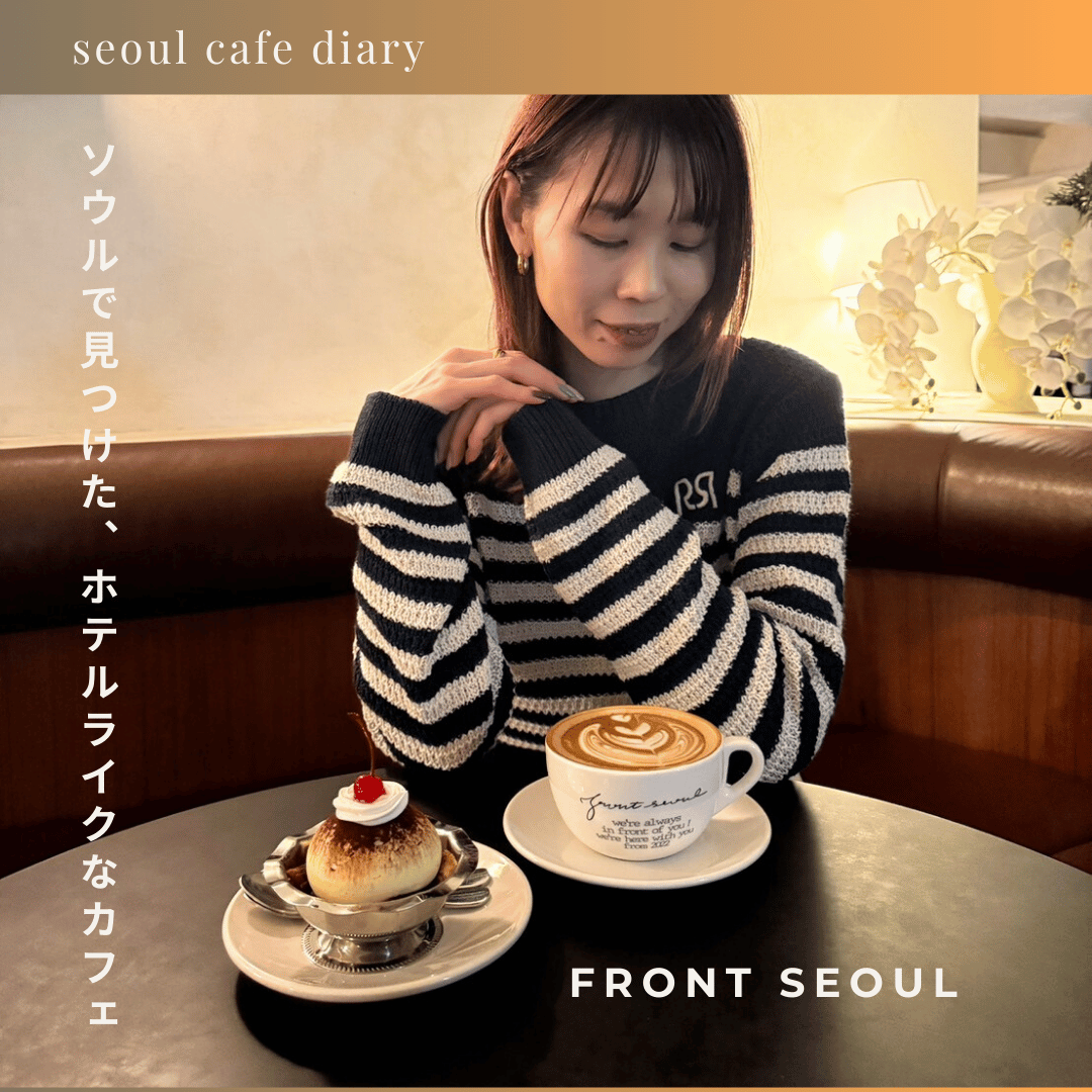 ホテルをコンセプトにした「FRONT SEOUL(フロントソウル)」は、海外ホテルのロビーのような洗練空間が魅力。落ち着いた雰囲気の中で過ごす上質なカフェ時間をご紹介します。