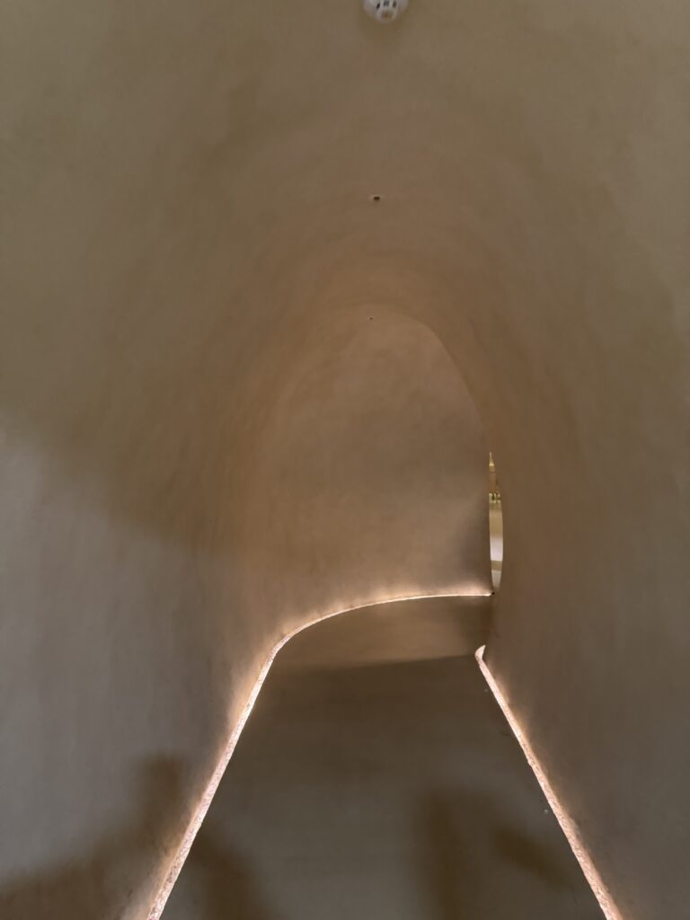 扉を開けると、曲線を描くトンネルのようなアプローチ。