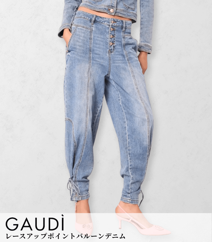 目を惹く裾のレースアップデザインが魅力の、GAUDÌのバルーンデニム。
